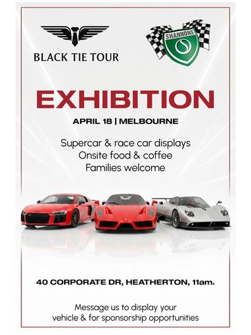 We are proud to announce a collaboration with Shannon’s Insurance! On Saturday 18/04 we will be hosting an exotic & race car display at the Shannon’s warehouse in Heatherton, with sponsors, food and coffee onsite. This event is open to the public and is family friendly.